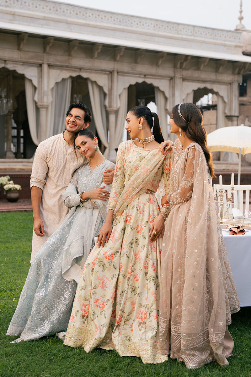 - Experience elegance with the Citrus Burst 3PC Silk Embroidered Pret. This set features a silk choli-style blouse adorned with intricate embroidery and tasseling on both front and back, complemented by a boat neck with delicate adda work. The fitted sleeves enhance the sophisticated look with matching embroidery and tassels. The silk lehenga showcases detailed embroidery along the bottom, pairing beautifully with the lightweight, graceful organza dupatta for a refined traditional ensemble.