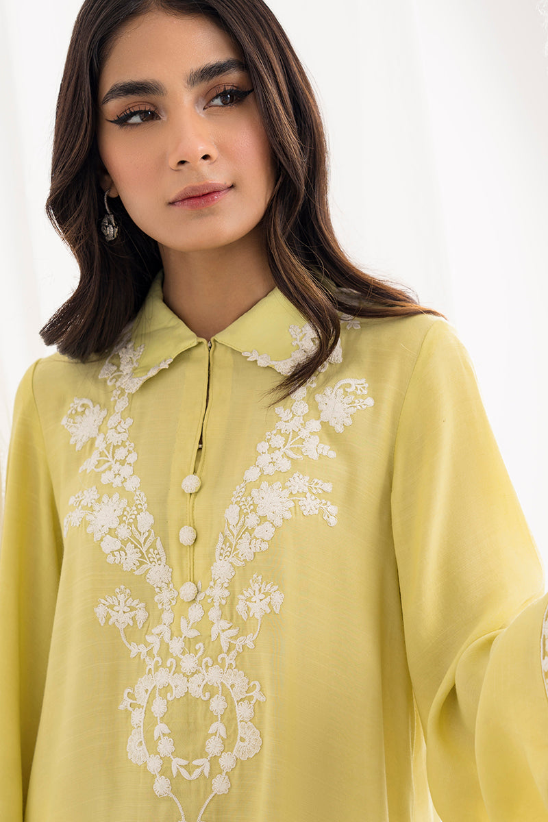 - FRONT PLAIN SHIRT WITH EMBROIDERED NECKLINE
