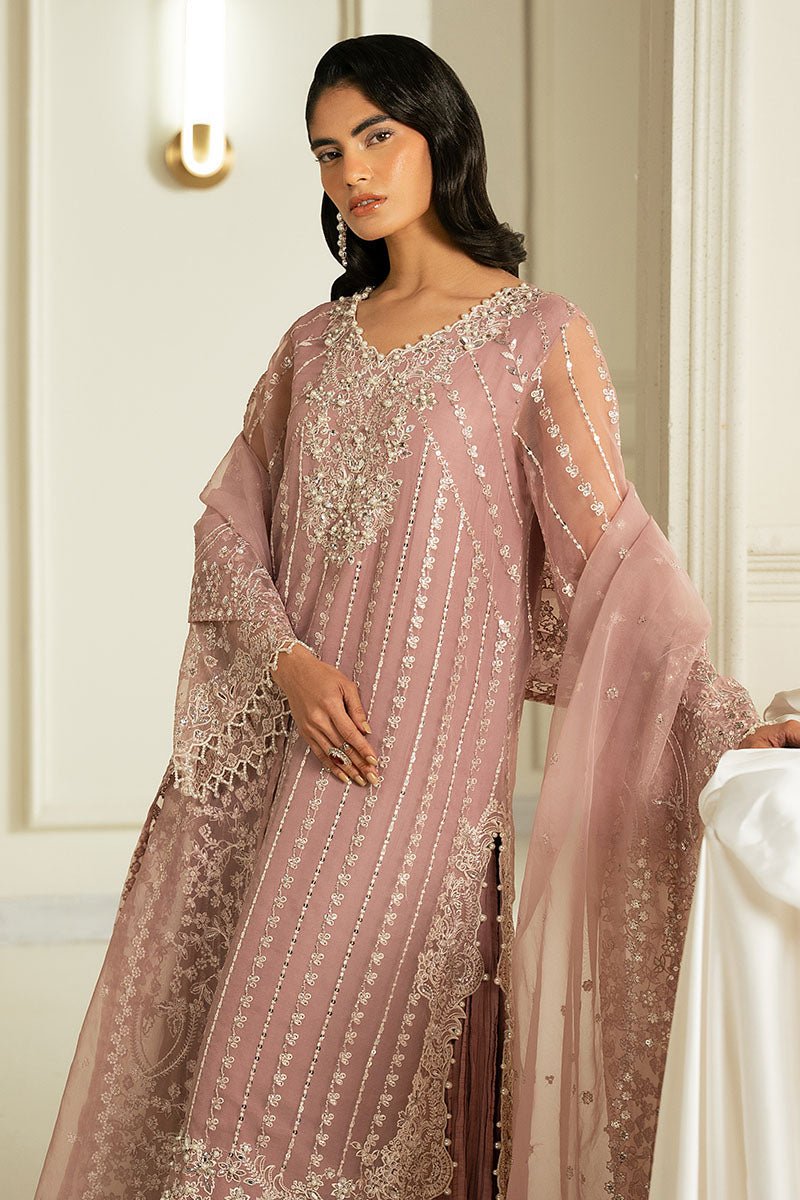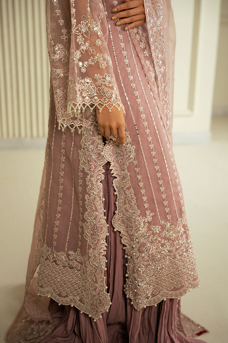 Elevate your style with our ENCHANTED GARDEN-3PC outfit. Featuring a long A-line shirt in organza, adorned with intricate embroidery and embellishments on the front, back, and neckline. The bell sleeves add a touch of elegance. Paired with a silk crushed palazzo and a beautifully embroidered organza dupatta. Perfect for any special occasion.
