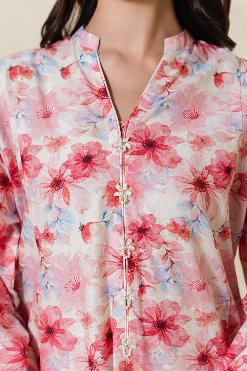 - Expertly crafted in an A-line style with drop shoulder and cambric panel, the FLORAL HEAVEN PRINTED SHIRT is a modern take on traditional shirts. The printed front and back, along with the half band neckline and dori piping, add a touch of elegance. The embroidered sleeves add a unique touch to this versatile piece.