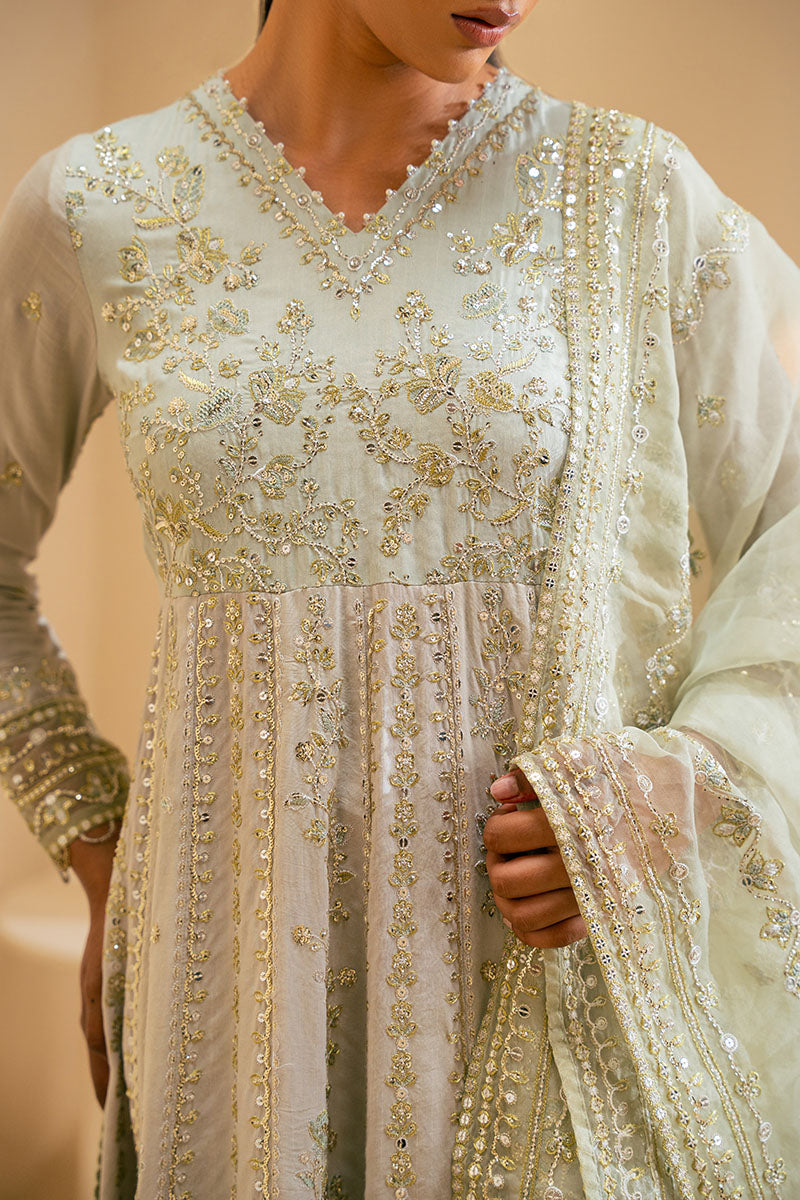 - The ORNATE MIST SHIRT is the epitome of elegance with its pishwas style made of luxurious silk. The front and back are adorned with intricate sequin embroidery, while the v-neckline features stunning hand embellishment. The sleeves also showcase sequin embroidery for a touch of glamour. Complete your look with the poly organza DUPATTA, accented with pearl tassels at the corners.