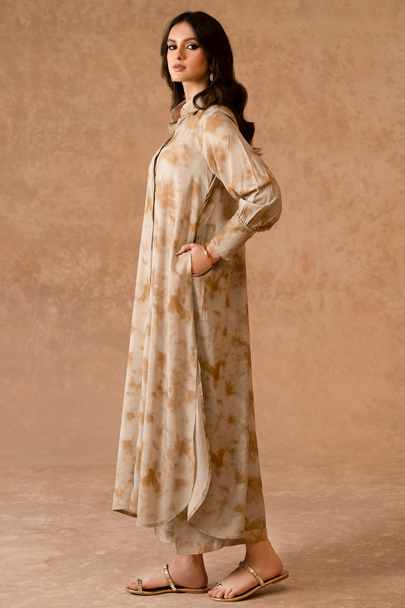 RUSSET WOOD-2 PIECE LINEN PRINTED SUIT