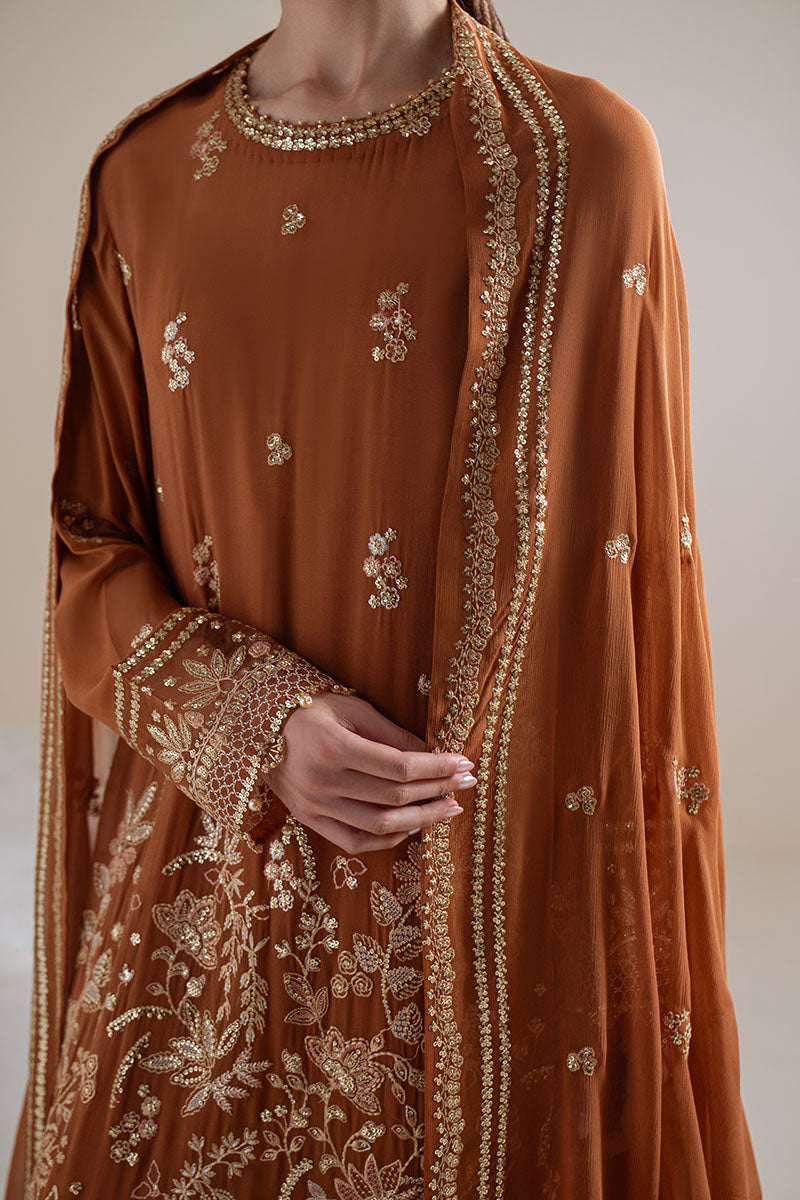 RUST EMBER-4PC CHIFFON EMBROIDERED SUIT