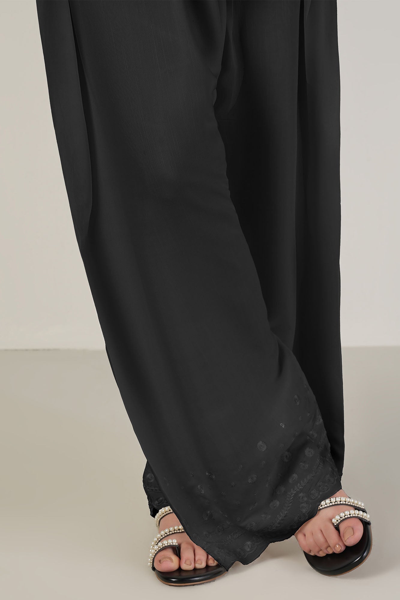 BAGGY SHALWAR RAW SILK DYED EMBROIDERED WITH SCALOP FINISH