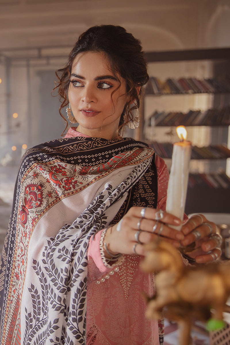 SUBTLE BABY PINK HUES WITH SYMMETRICAL PRINT ON THE SHIRT, PAIRED WITH A BLACK AND WHITE DIGITALLY PRINTED DUPATTA IS DEFINITELY AN ADD-TO-CART MATERIAL!