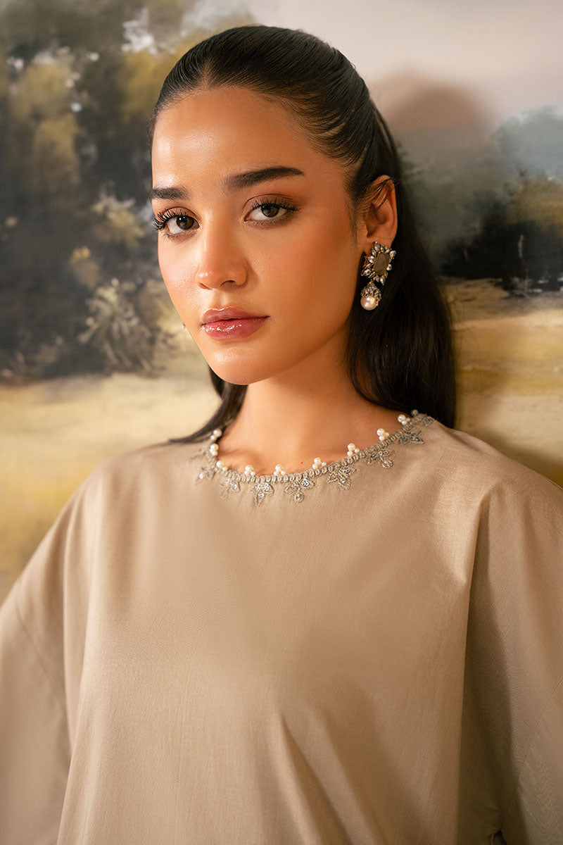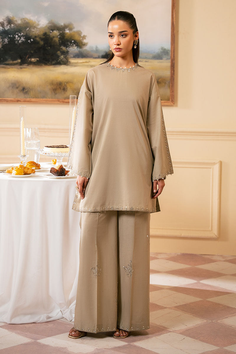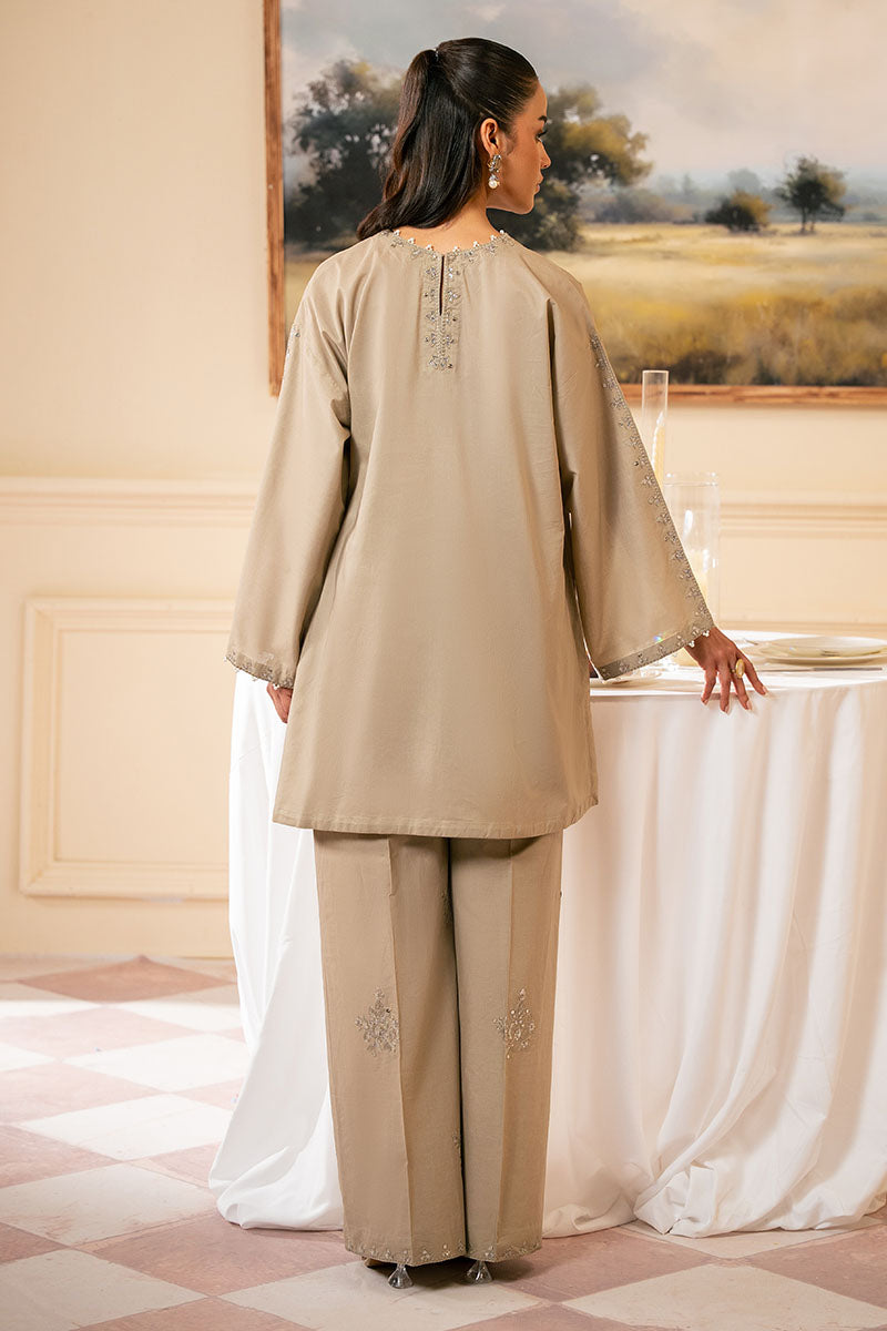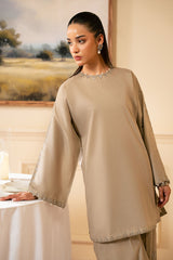 - Expertly crafted for a sophisticated and effortless look, this SILVER SAGE-2PC (SHIRT & TROUSER) set will elevate your wardrobe. The drop shoulder boxy fit and embroidered detailing on the shirt add a touch of elegance, while the embroidered culottes offer a comfortable and stylish bottom option. Upgrade your style with this chic set.