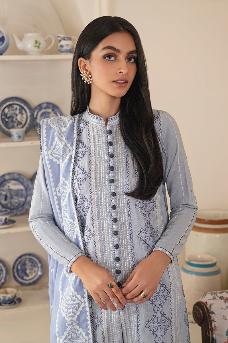 SILVER SHADOW EMBROIDERED SHIRT - 3PC (SHAWL)