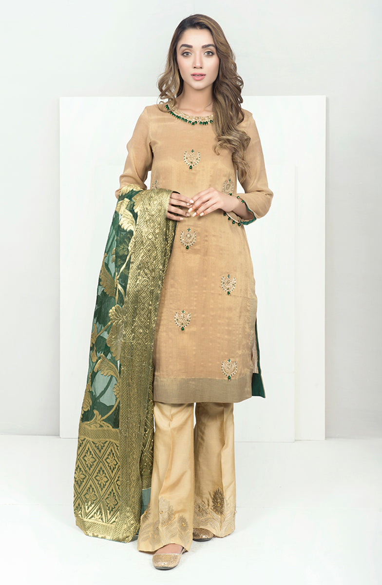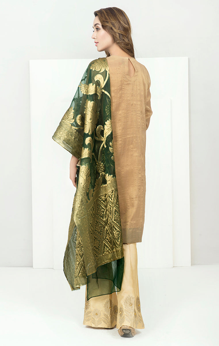 READY TO WEAR EMBELLISHED ORGANZA SHIRT AND SLIP WITH DUPPATA