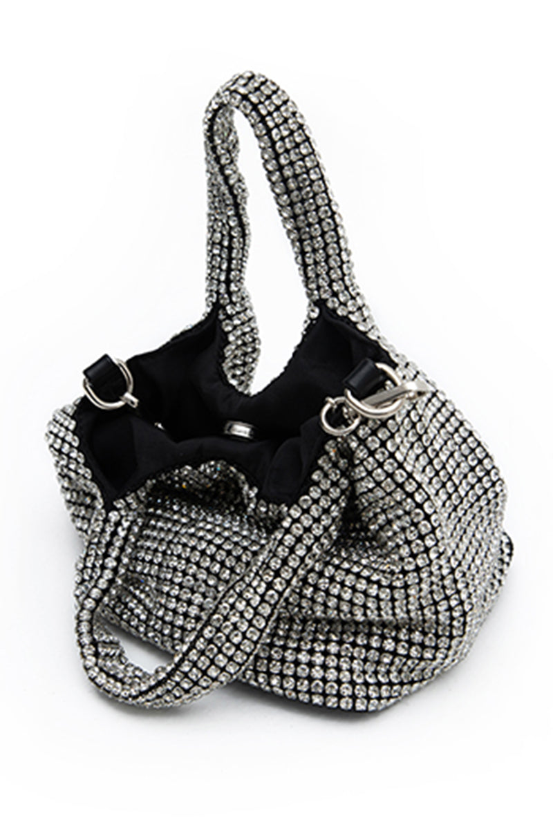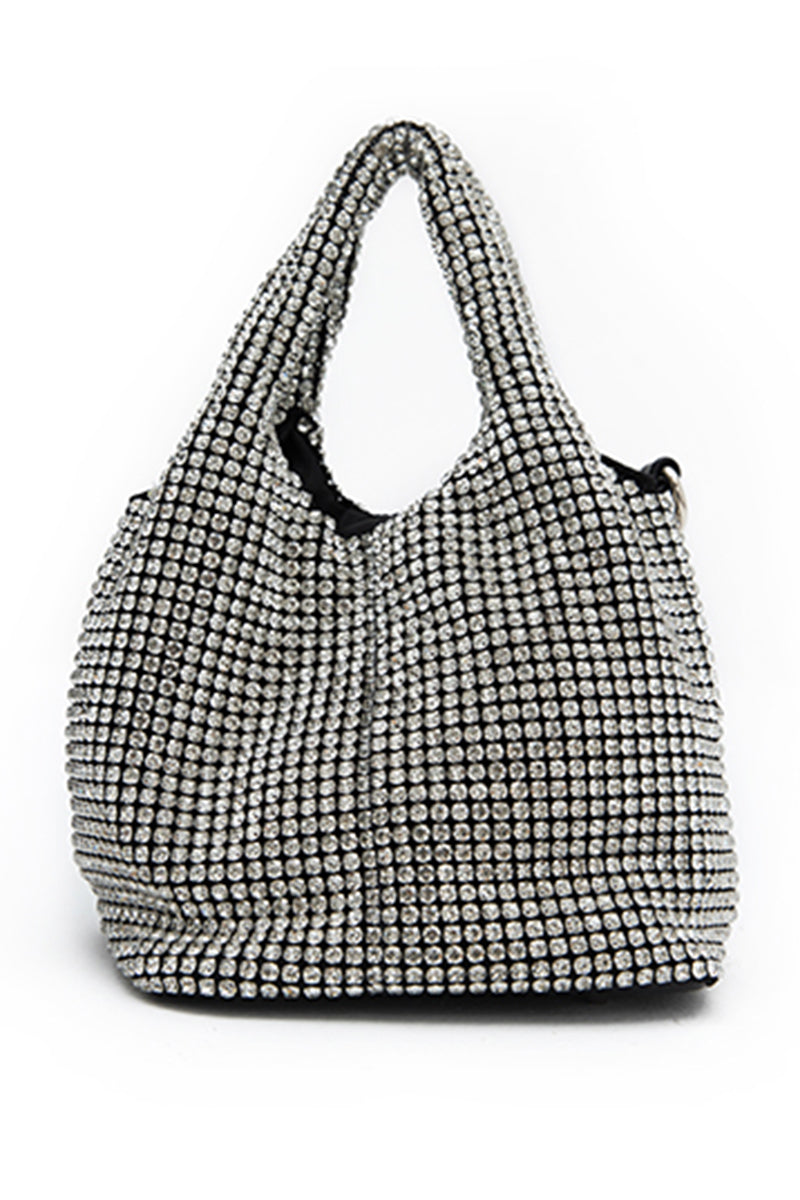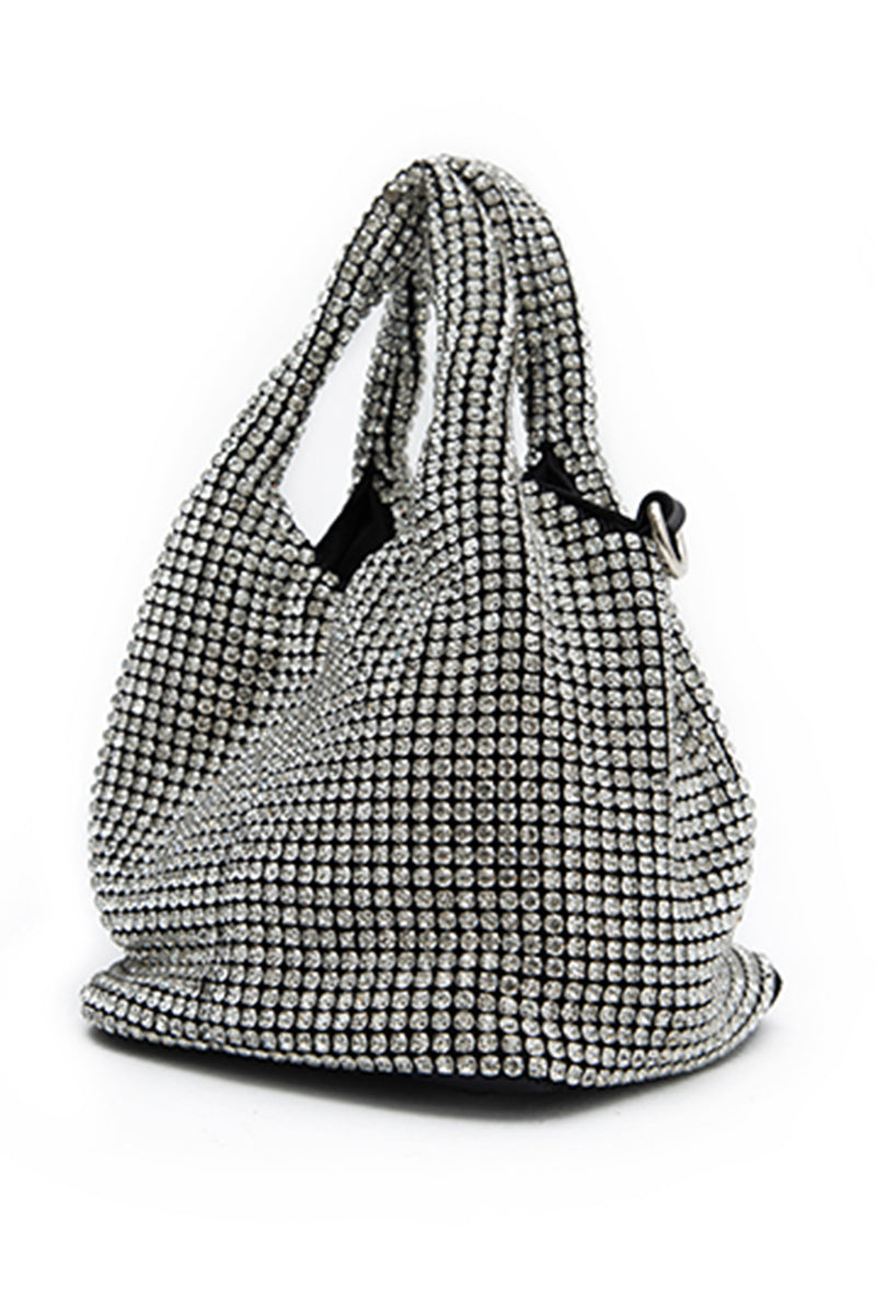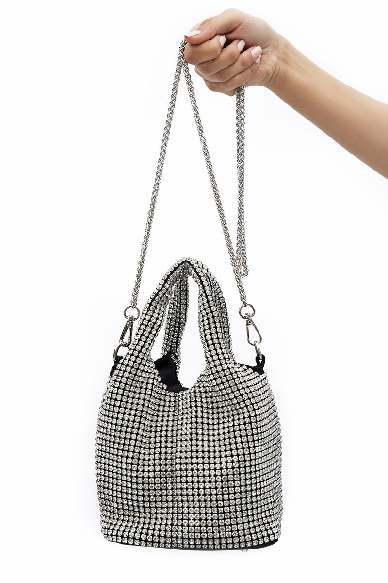 Silver Crystal Mesh bag, Carry in hand or use the chain strap and wear on the shoulder or cross-bodyColor: Silver
