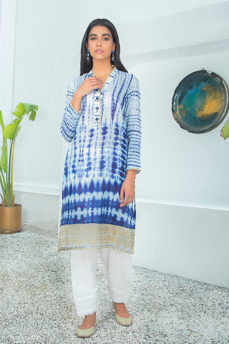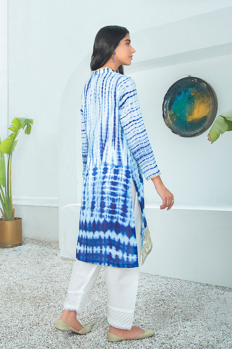 Splash Teal, Featuring Tie n Dye on Cotton Net is a Classic take on a Brand New Style. The Kurta Features Decorous Mirror Buttons On the Neckline Patchwork on the Hem and Subtle Lace on the Cuff.