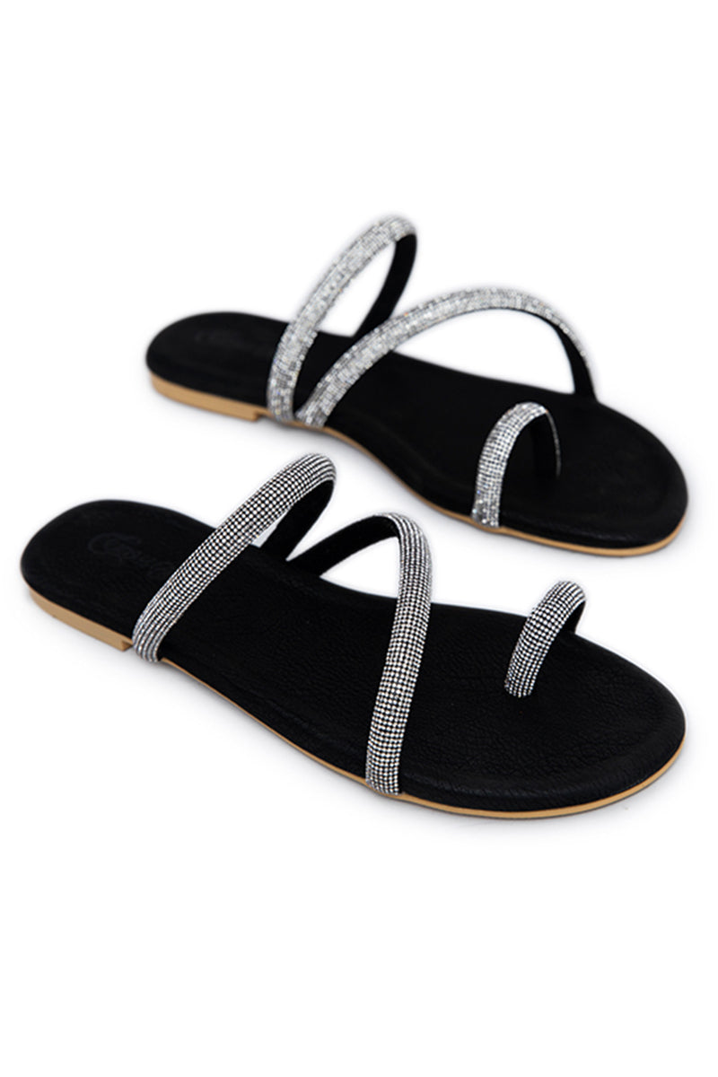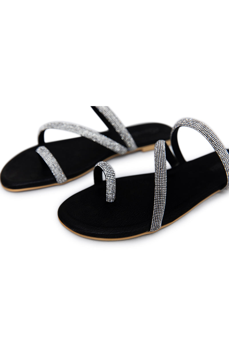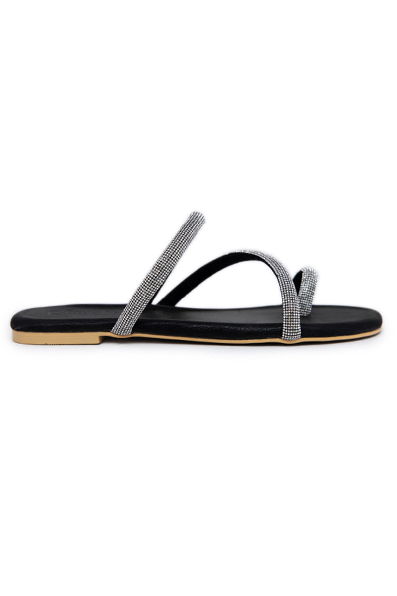 THIS TRENDY SLIPPER WITH THEIR CLASSIC SILVER CRYSTAL STRAPS AND BLACK BASE, STAND OUT WITH EVERY OUTFIT YOU WEAR