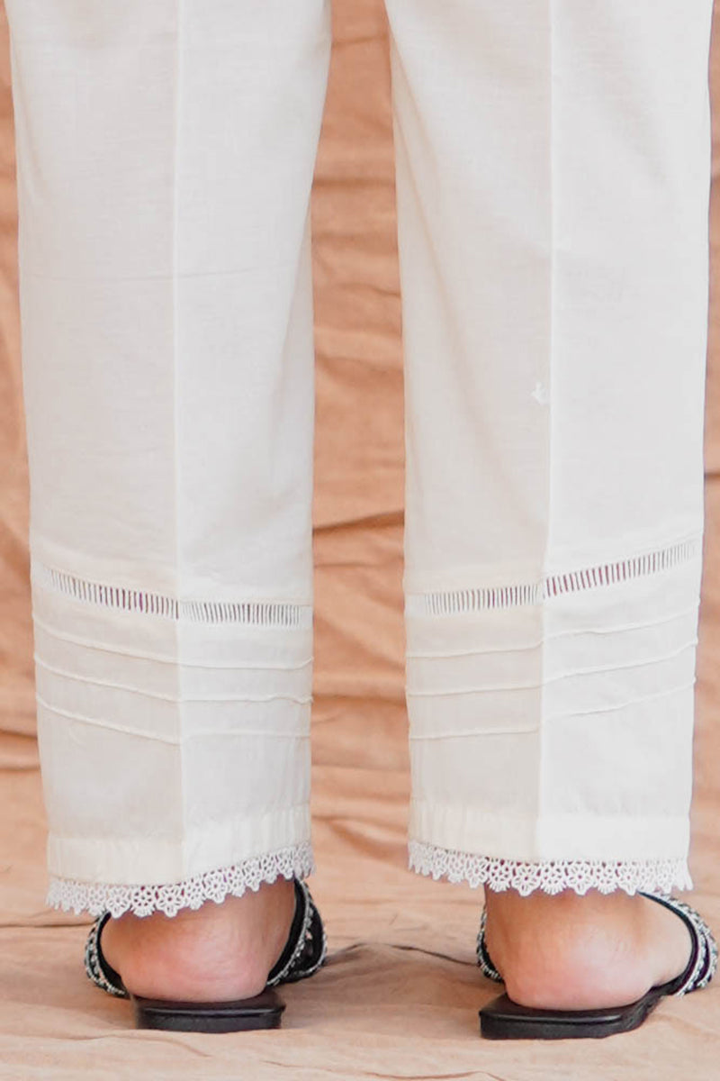 STYLE STRAIGHT FITTED CAMBRIC PANTS WITH PIN TUCKS AND INSERTION LACE