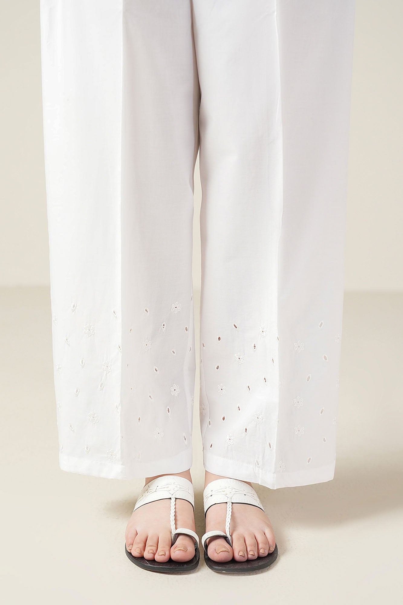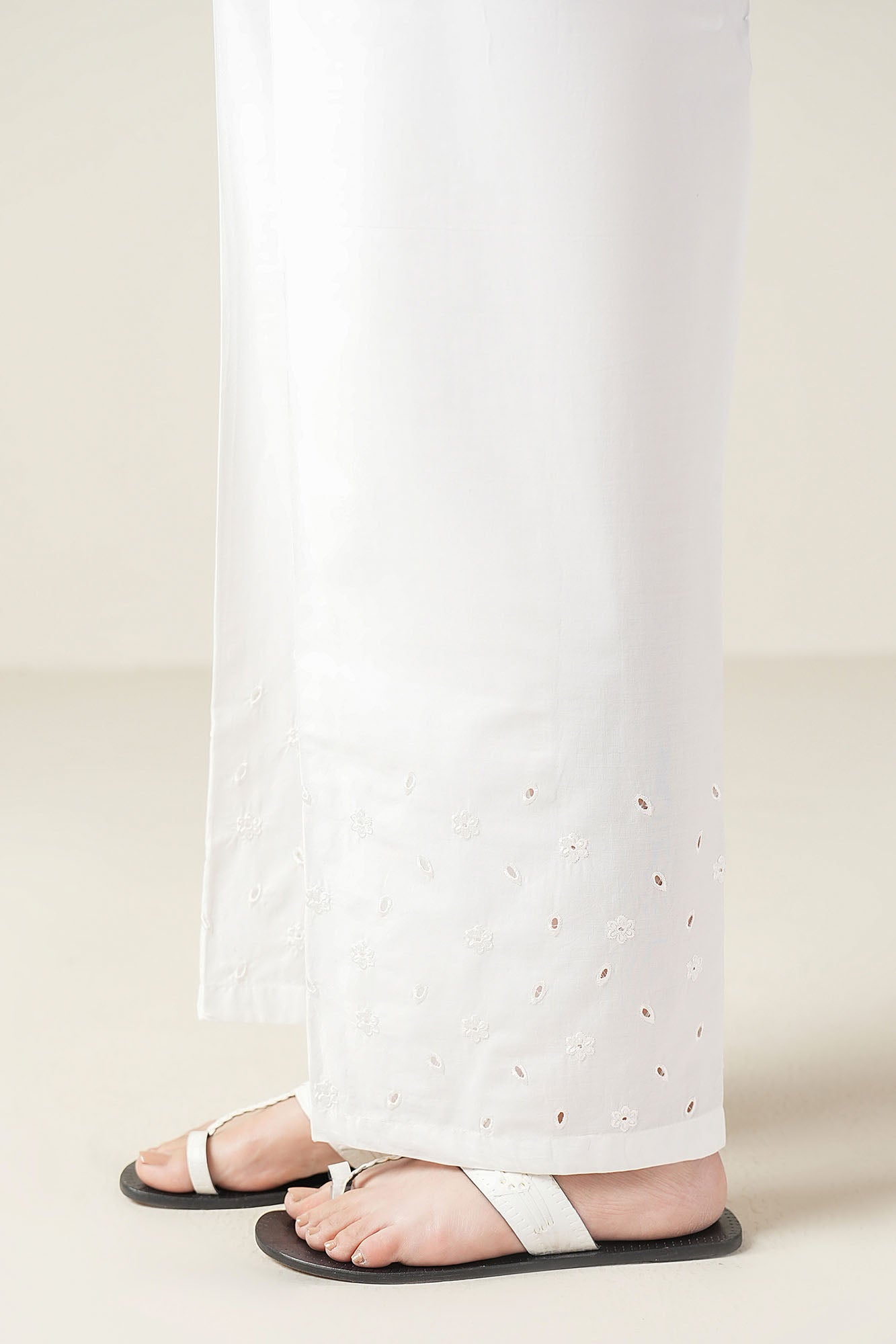 STRAIGHT PANTS CAMBRIC EMBROIDERED SPARY ON HEM