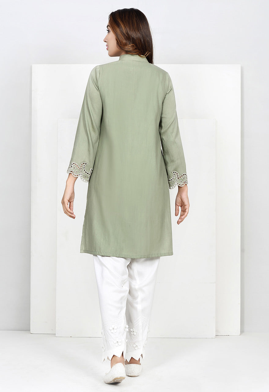 COTTON SATIN EMBROIDERED READY TO WEAR SHIRT