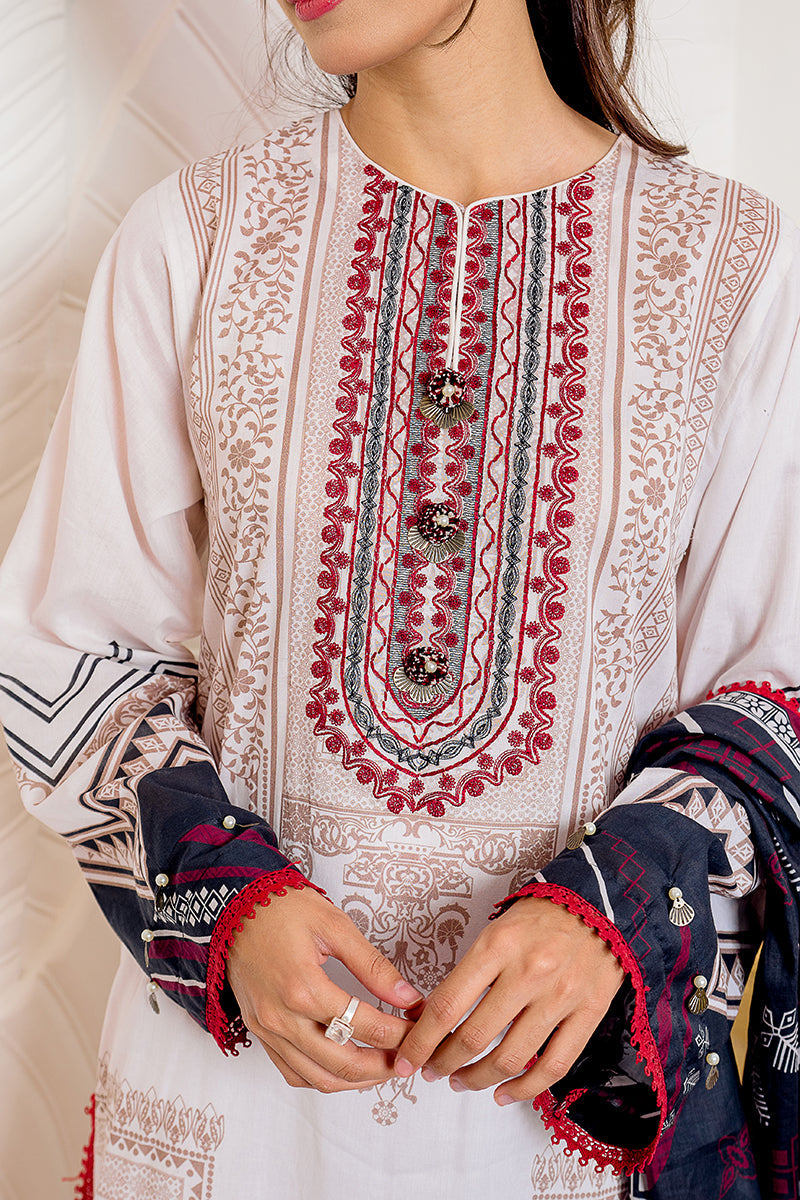 DIGITAL PRINTED CAMBRIC SHIRT,1 EMBROIDERED NECKLINE