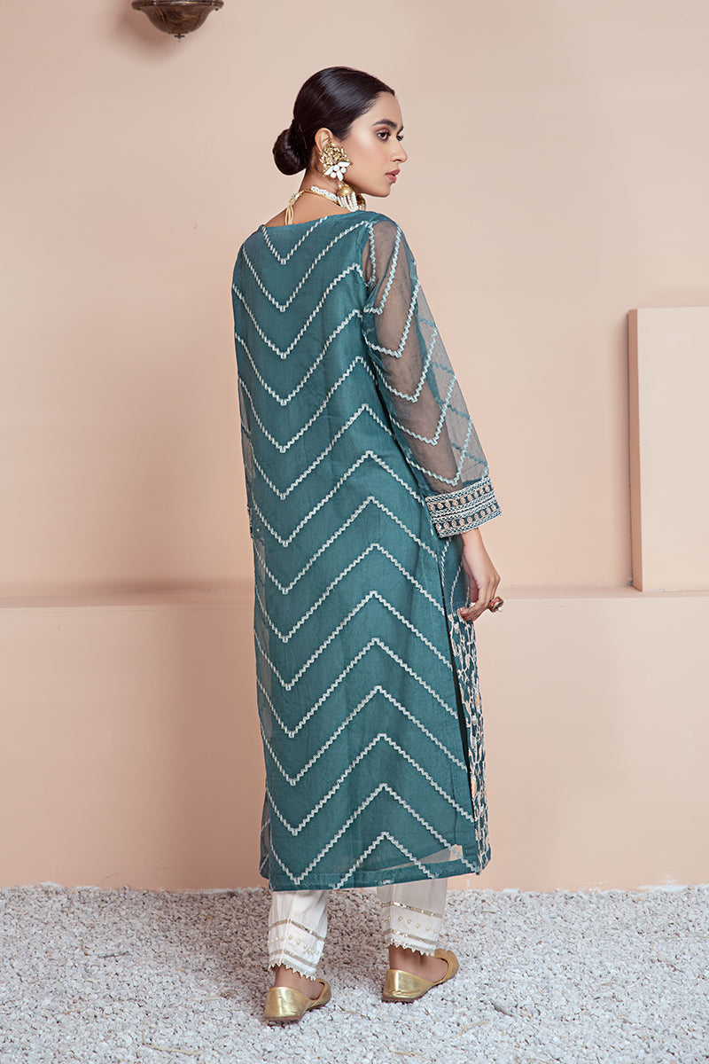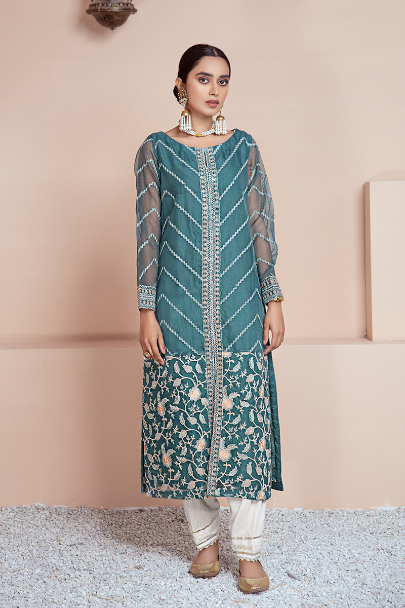 Teal Breeze is a Long Embellish Tunic that is Carried Flawlessly as a Formal Attire, with Heavy Work on Border. This Kurta Has a Penchant to go with a Close Cut Shalwar or a Formal Organza Bordered Bottom with Bold Jewelry.