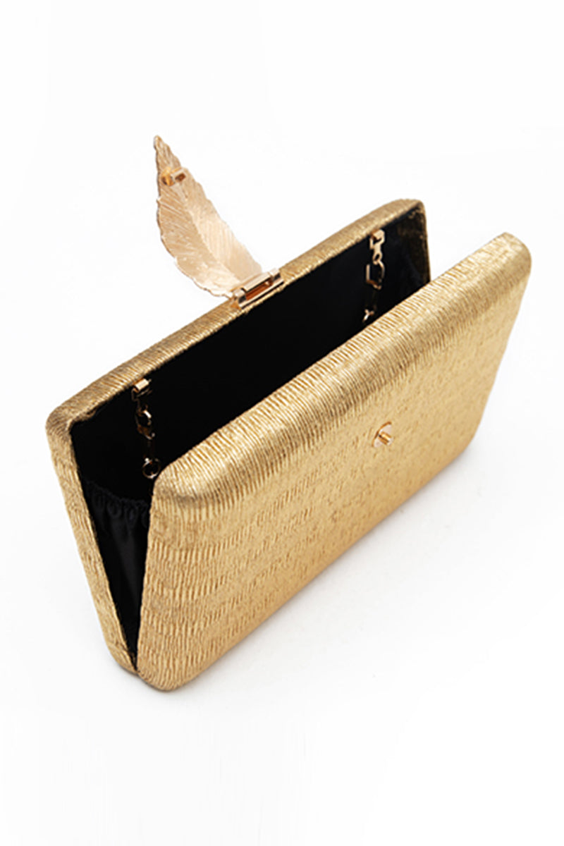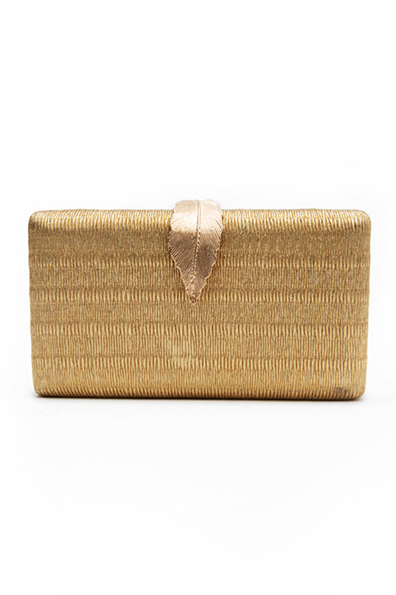 A hard case bag, a modern and streamlined accessory for your evening wardrobe, it's finished with a leaf metal clasp and detachable strap for versatile styling.Color: Gold