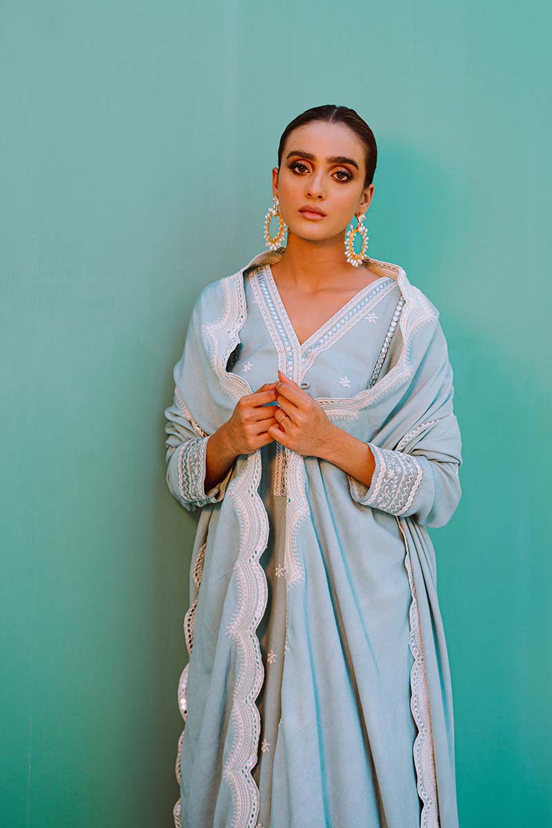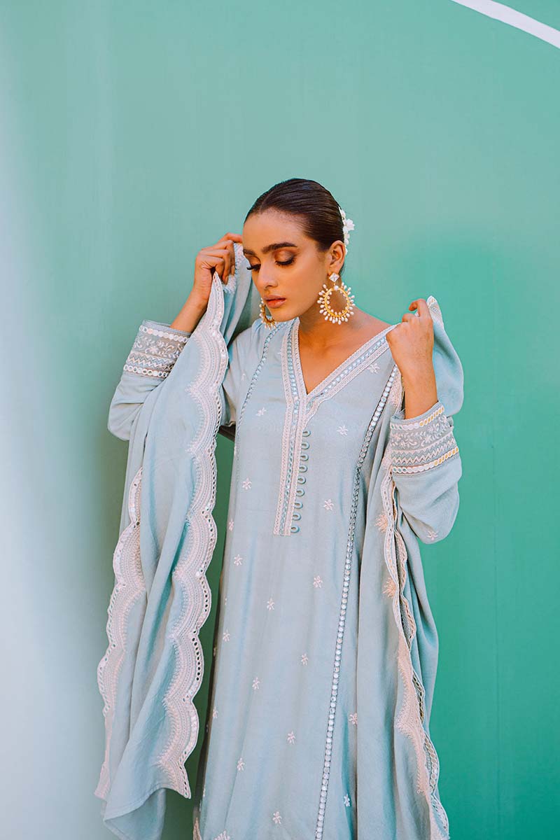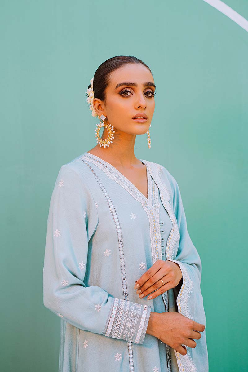 This Subtle Embroidered Shirt with Faux Mirror Details on the Shirt and Shawl is a Perfect Choice for Day Events. Pair with Clear Heels and Hoop Earrings to Stand Out