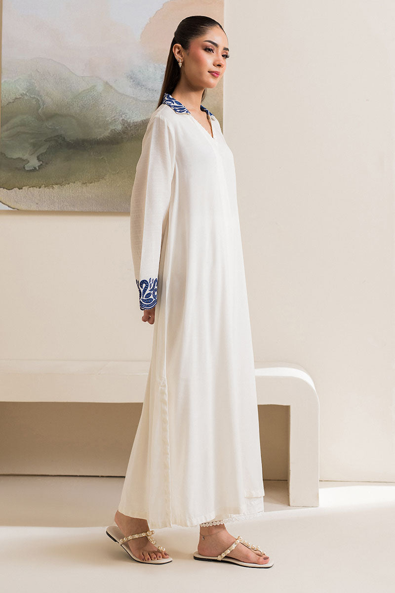 Elevate your wardrobe with this expertly crafted A-line shirt, where refined tailoring meets artisanal detail. The front features a solid-dyed finish with precision pleating for a polished silhouette, while the back maintains clean lines in matching solid dye. A structured collar with subtle slit detailing frames the neckline, and embroidered sleeves add a sophisticated touch of handcrafted elegance. Constructed from breathable linen, this versatile piece transitions seamlessly from professional settings to casual occasions, offering both comfort and timeless style.