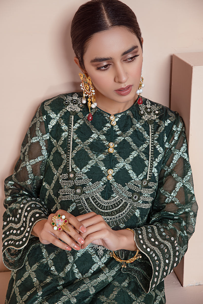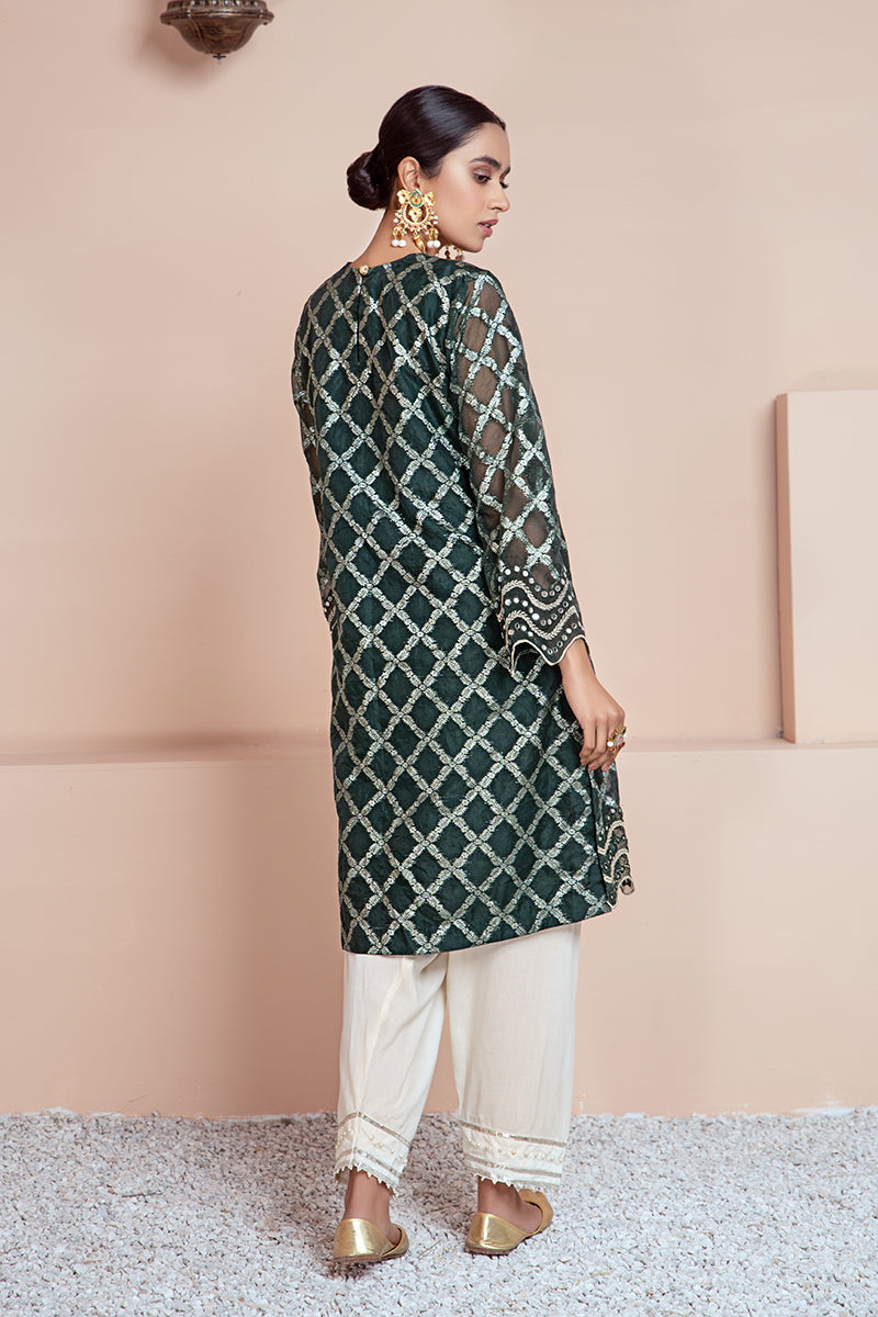 The Perfect Fusion of Classic and Contemporary makes this Jacquard Kurta Incandescent. This Embellished Ensemble Can be worn with a Fancy Shalwar for a Classic or a Flared Trouser for a Contemporary Look