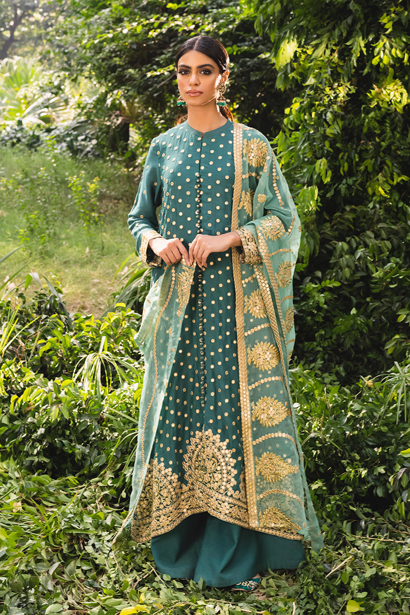VERDANT RELIC-4PC EMBROIDERED SILK SUIT