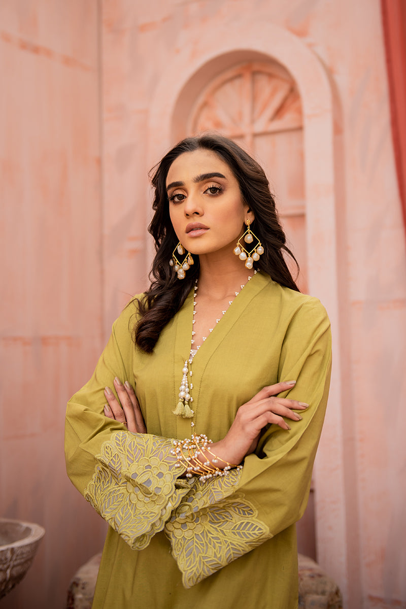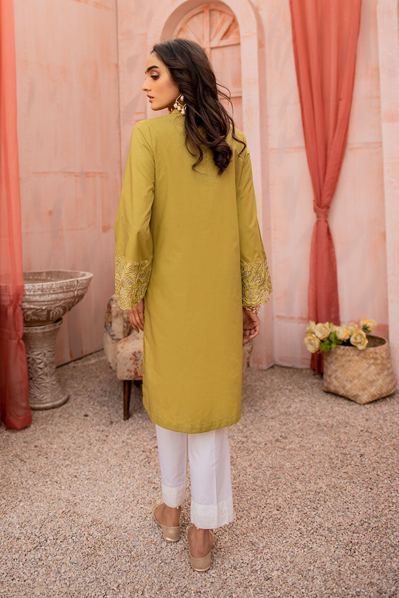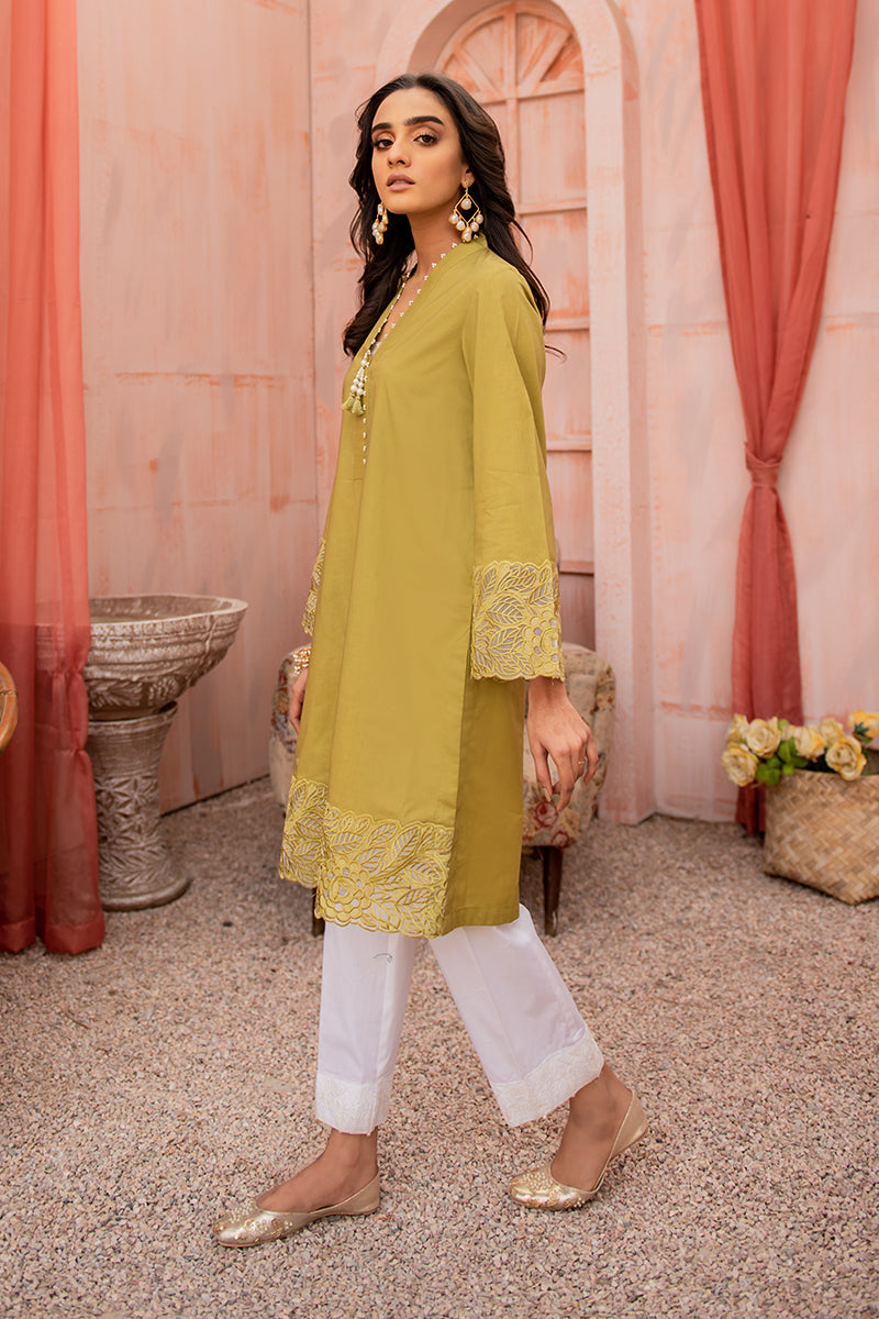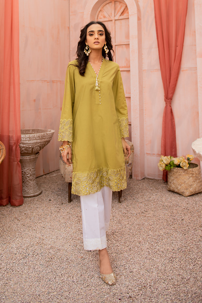 - LAWN SOLID A-LINE SHIRT WITH NECKLINE EMBELLISHMENTS AND EMBROIDERY DETAILS