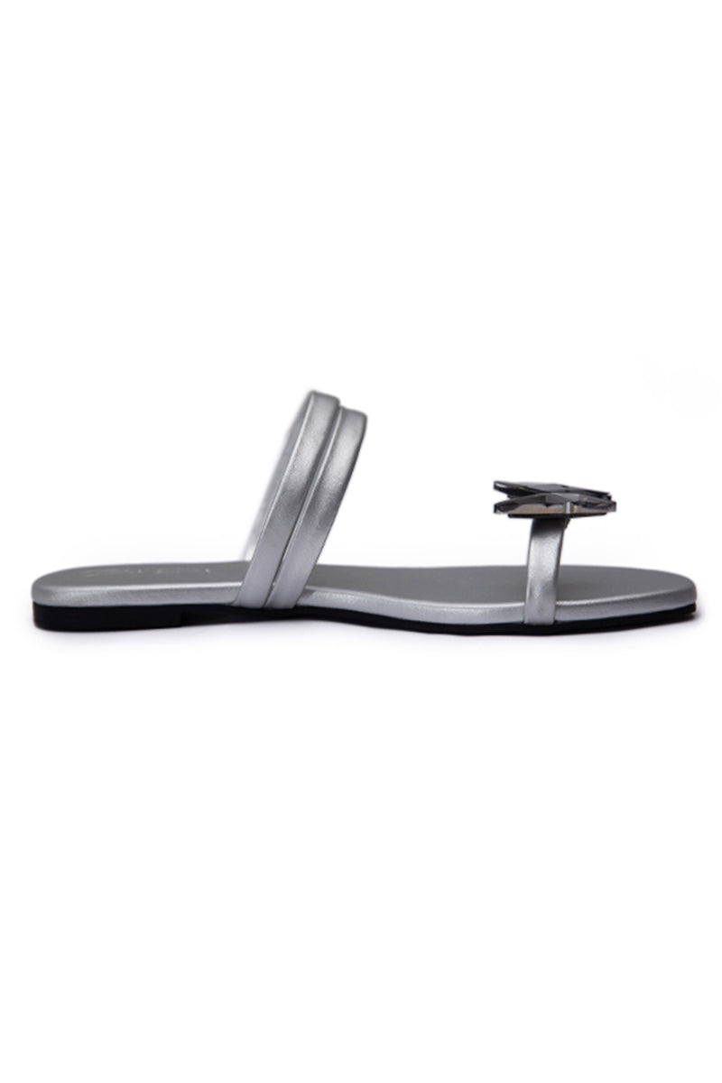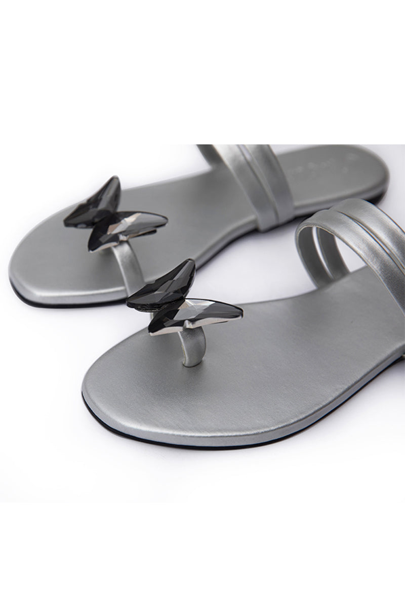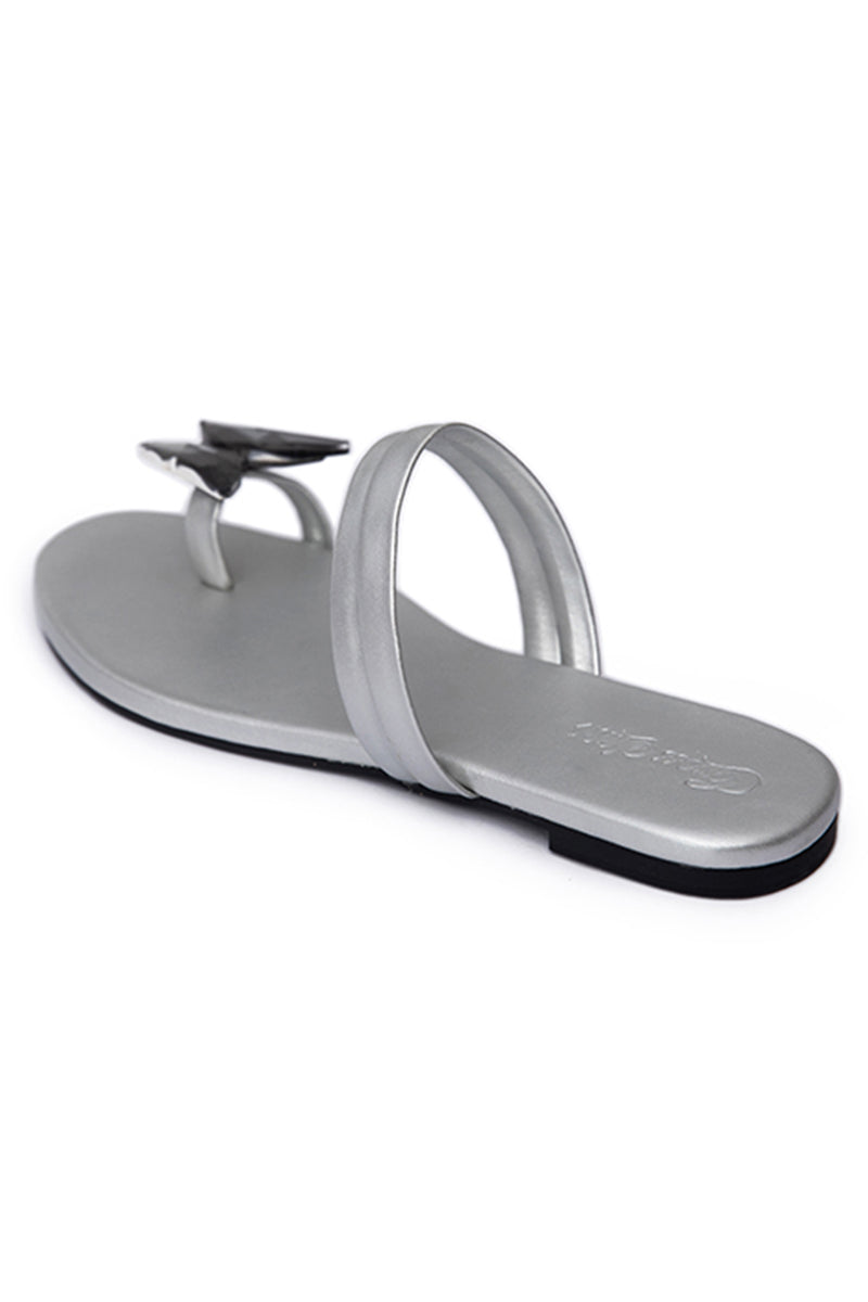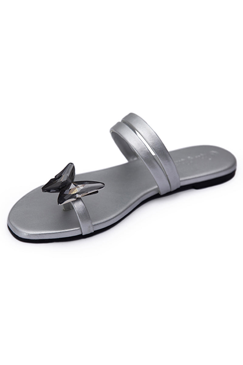 THONG SLIPPERS WITH A BUTTERFLY TRIM AND SILVER BASE,WEAR THESE COMFY SLIPPERS WITH YOUR SUMMER ATTIRE AND LOOK STYLISH.