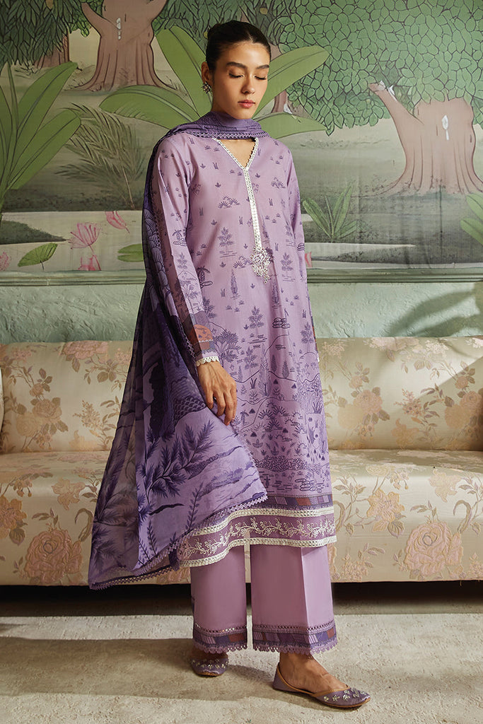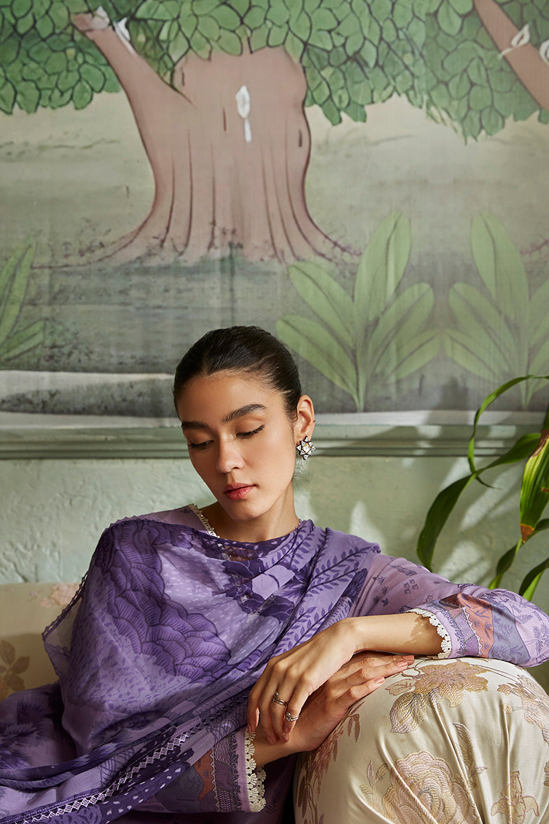 Viola Profuse is an elegant shirt set composed of a digital printed cambric shirt, a dyed cambric trouser, and a chiffon digital printed dupatta. The shirt is adorned with 1 embroidered neckline and 40 embroidered pattis for an intricate and sophisticated design. Perfect for special occasions, this luxurious set is sure to be cherished for years to come.