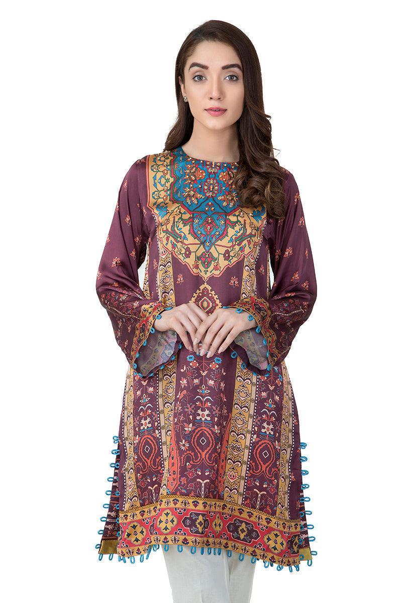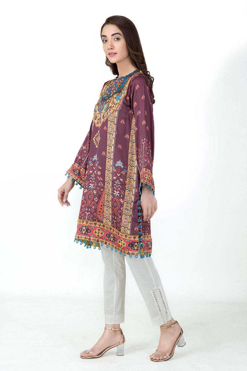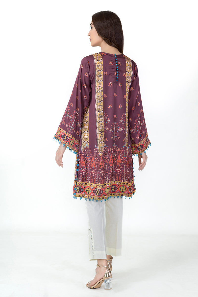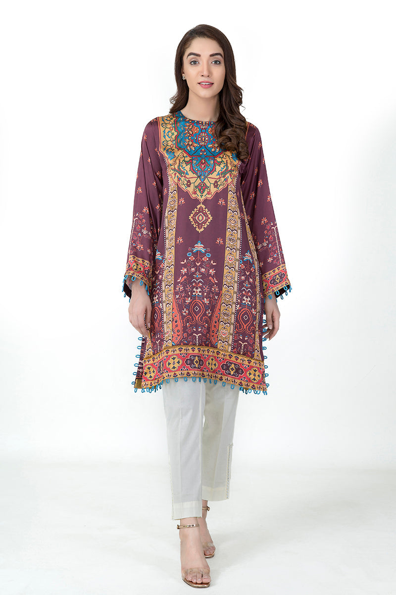 Defined patterns of Vivid Scarlet plays a 2 in 1 for casual and formals for you. The loops on border and sleeves have a way with light bottom.