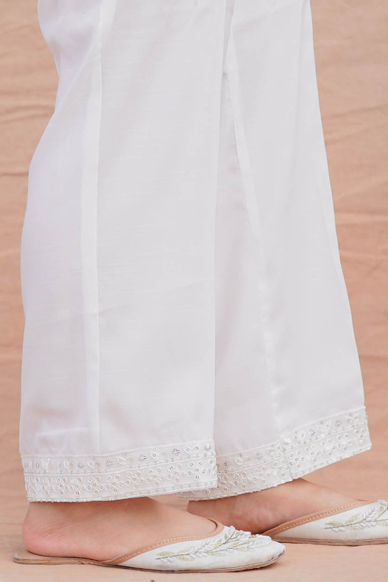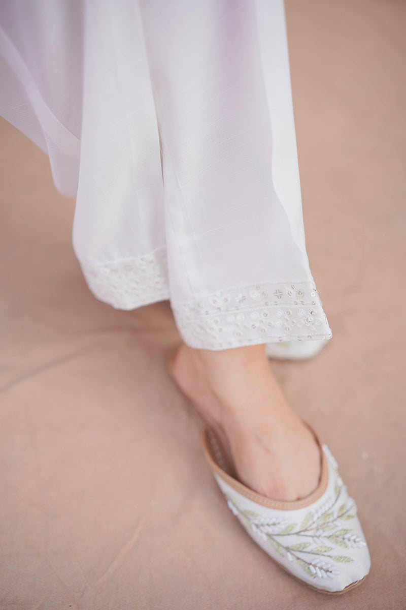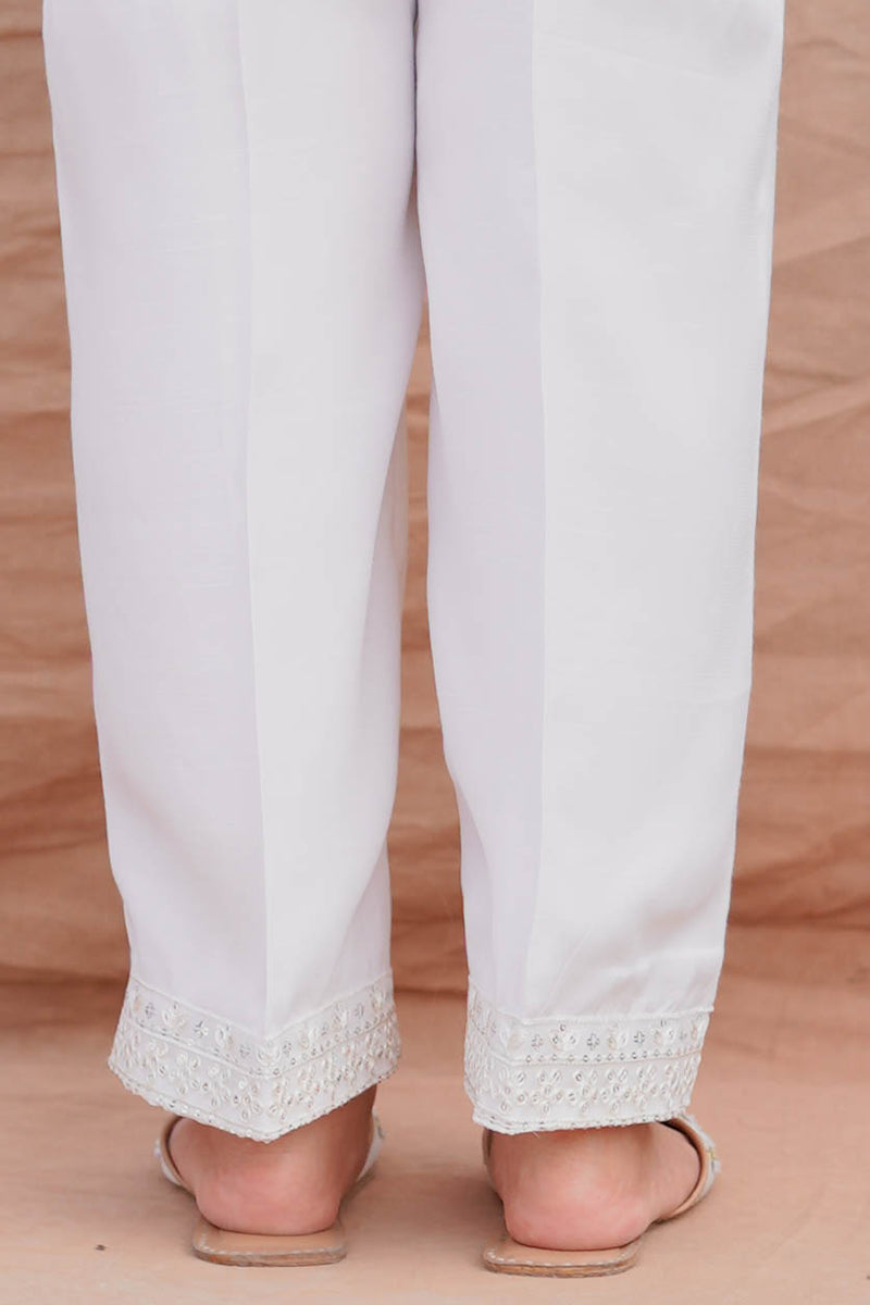 STRAIGHT SEQUIN EMBROIDERED RAW SILK PANTS