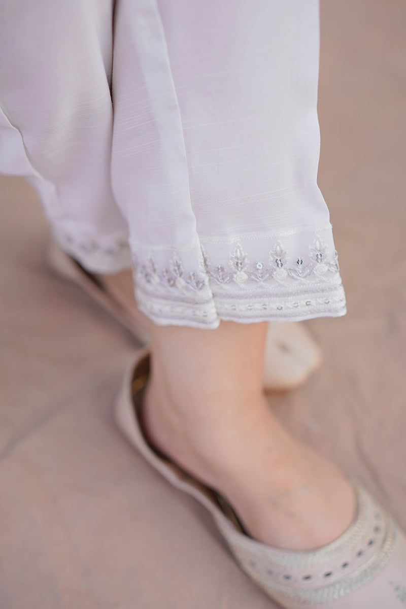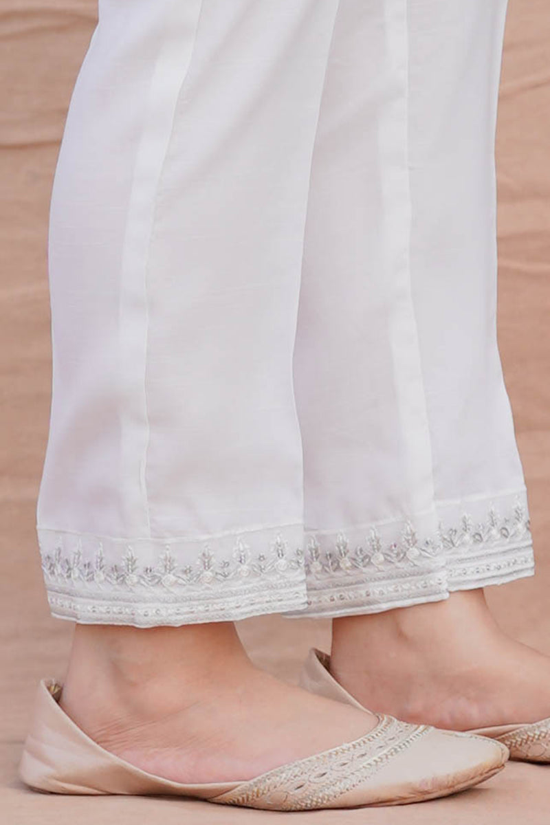 STRAIGHT FITTED RAW SILK SEQUIN EMBROIDERED PANTS