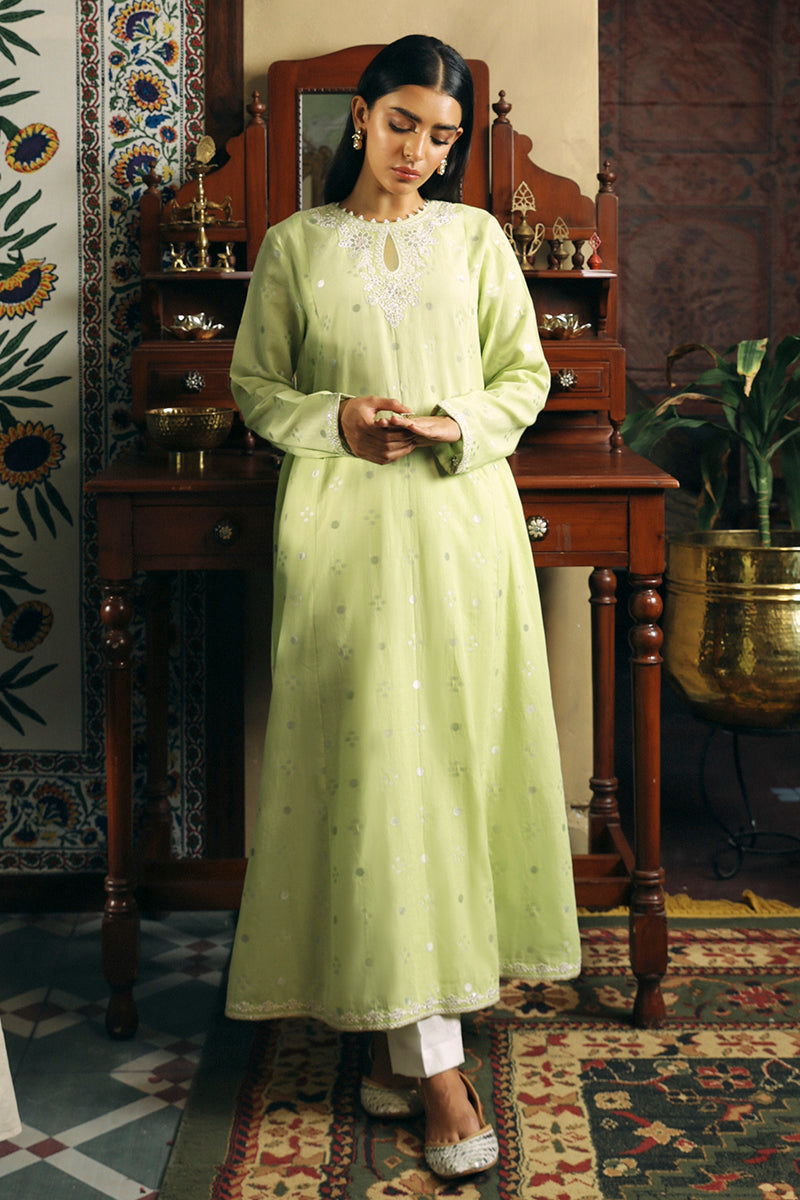 - This ZAMURD-1 PIECE JACQUARD EMBROIDERED SHIRT is the perfect mix of style and function. Featuring a classic a-line paneling shirt with jacquard fabric, the shirt is elegantly adorned with front embroidery and a round neckline adorned with pearl details. The sleeves are embroidered and the back is plain dyed for a finished look. Dress it up with your favorite pants for a smart, contemporary style.