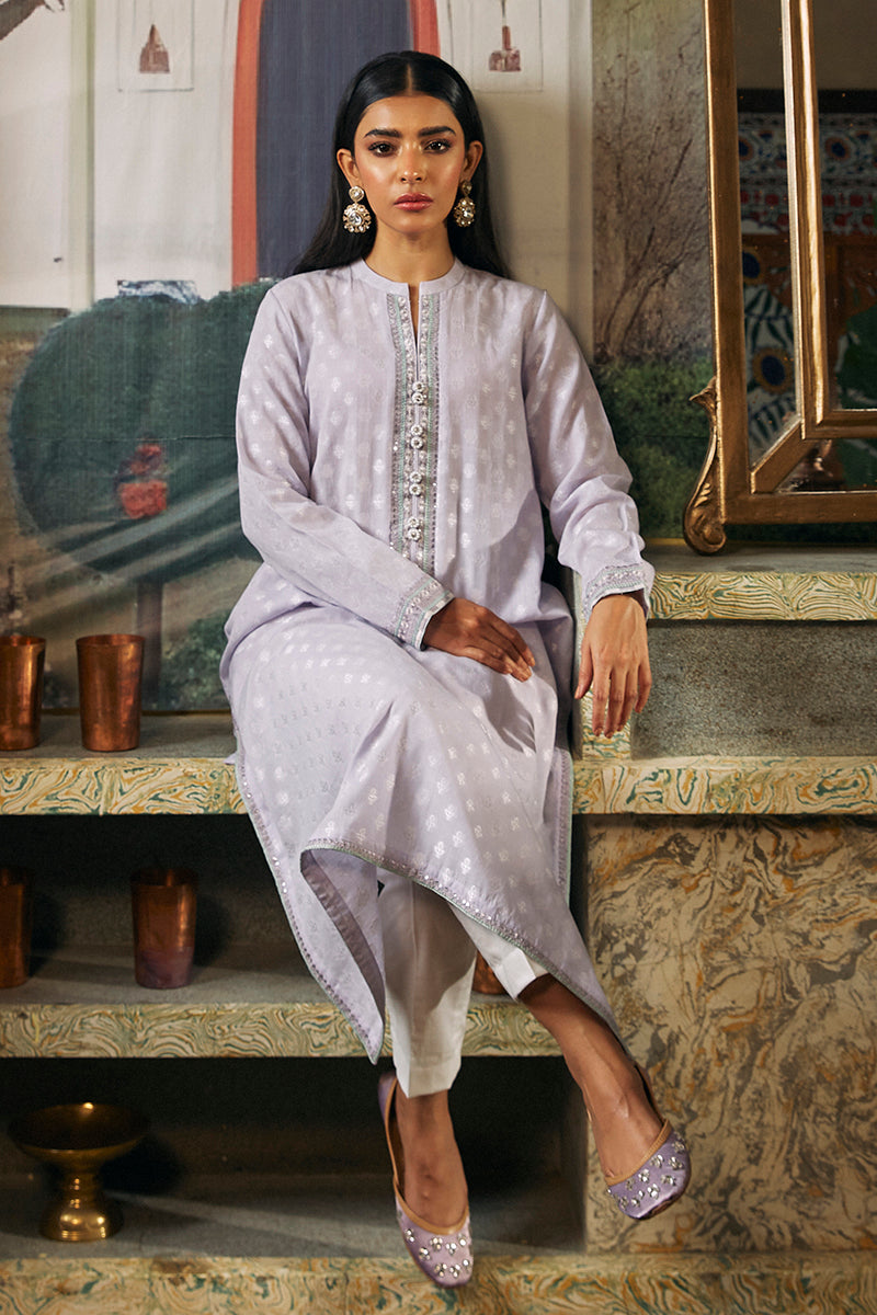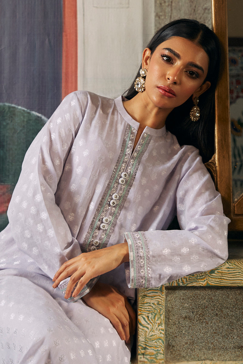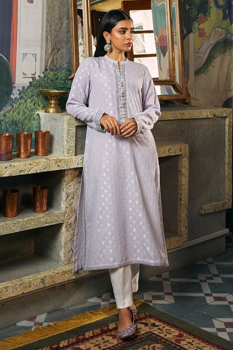 - ZEBAISH-1 PIECE JACQUARD EMBROIDERED SHIRT is a stylish and sophisticated item of apparel. With an eye-catching jacquard fabric, this shirt features a straight cut with embroidery on the front, plain dyed jacquard on the back and a neat neckline band with button detail and embroidered sleeves. Perfect for any occasion.